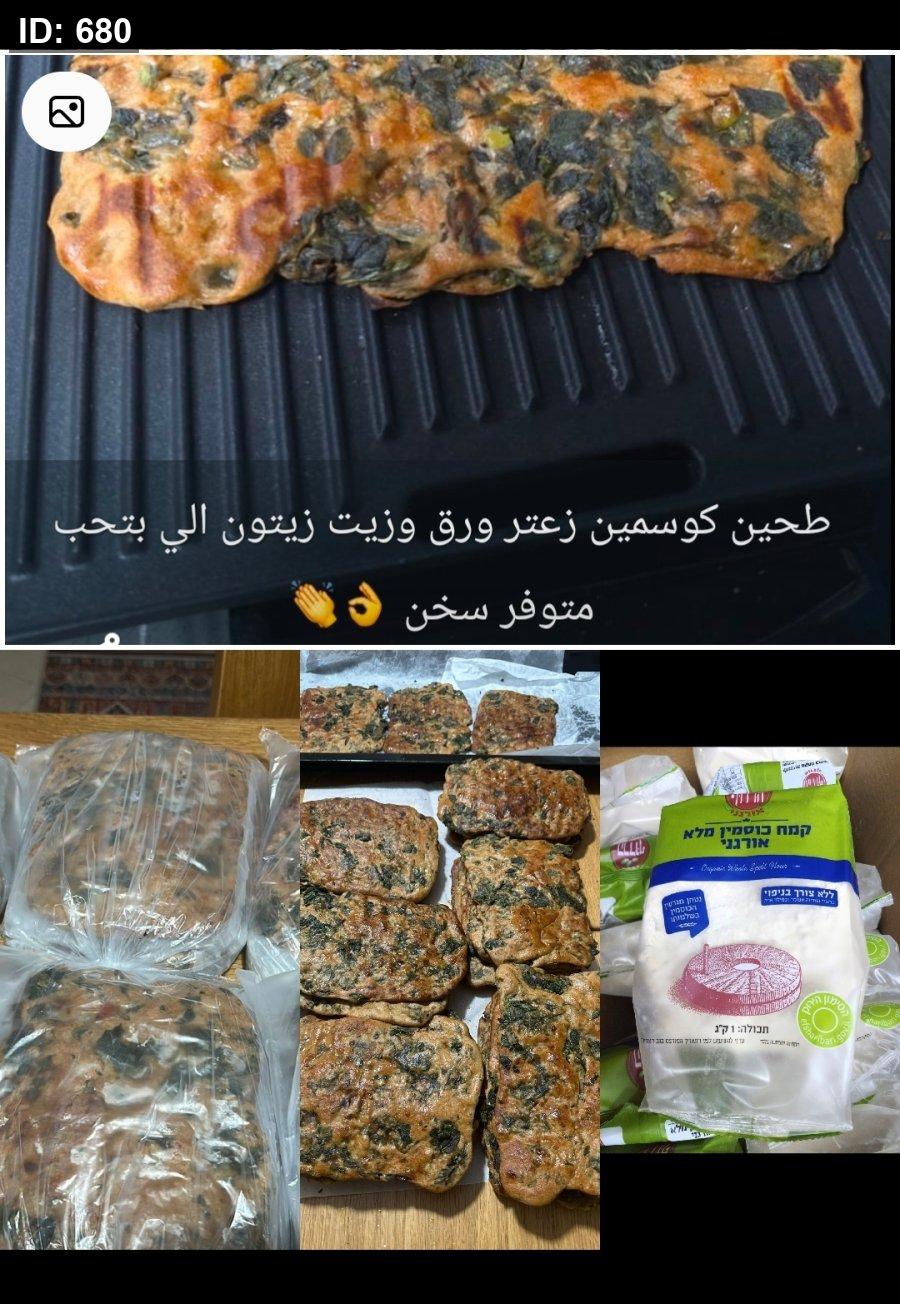 قراص زعتر كوسمين كل 6 قراص مع بعض 60 شيكل من طحين الكوسمين العضوي النقي وزيت الزيتون وورق زعتر