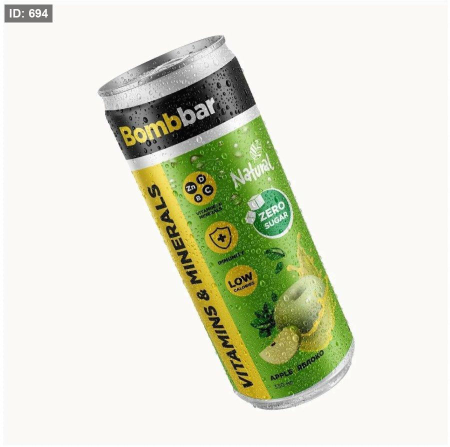 مشروب غازي Bombar بطعم الليمون والتفاح مدعم بالفيتامينات والمعادن بدون سكر