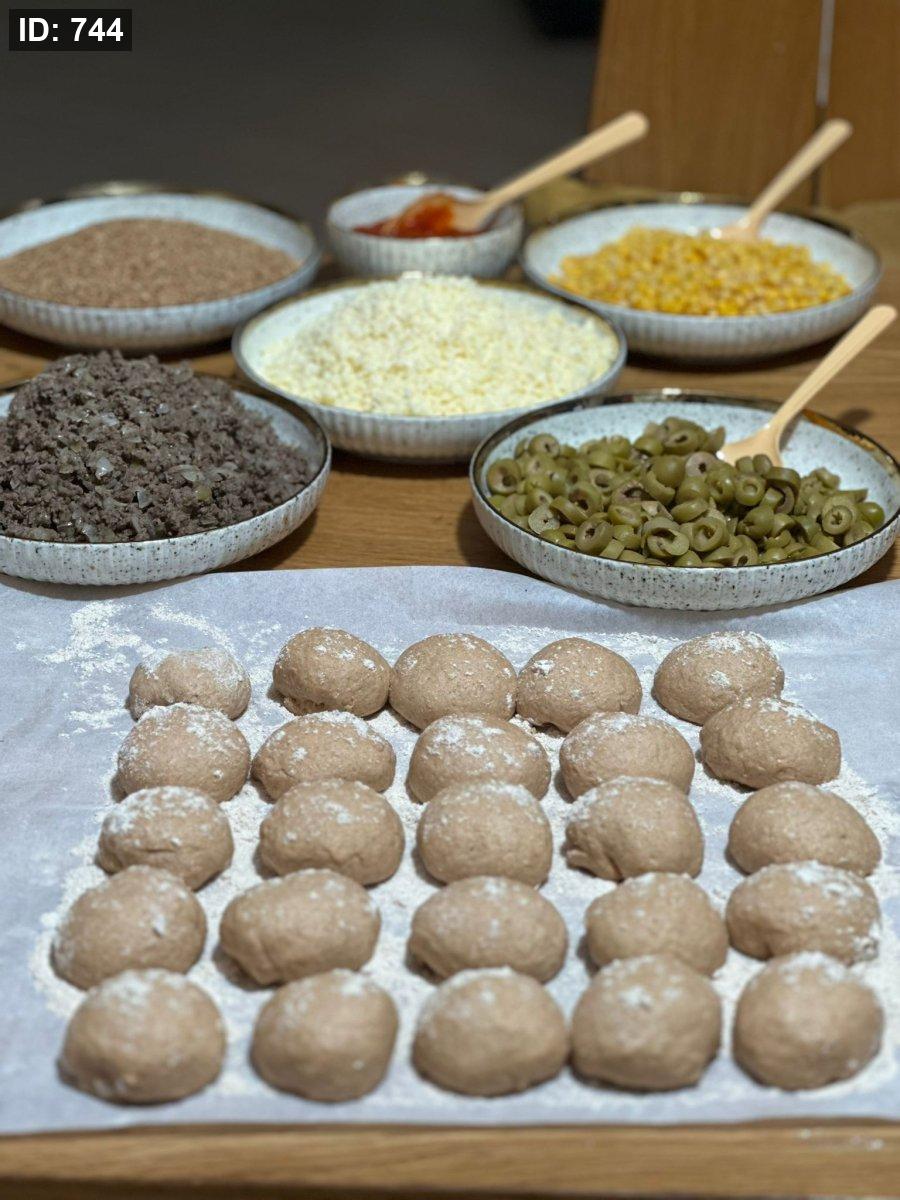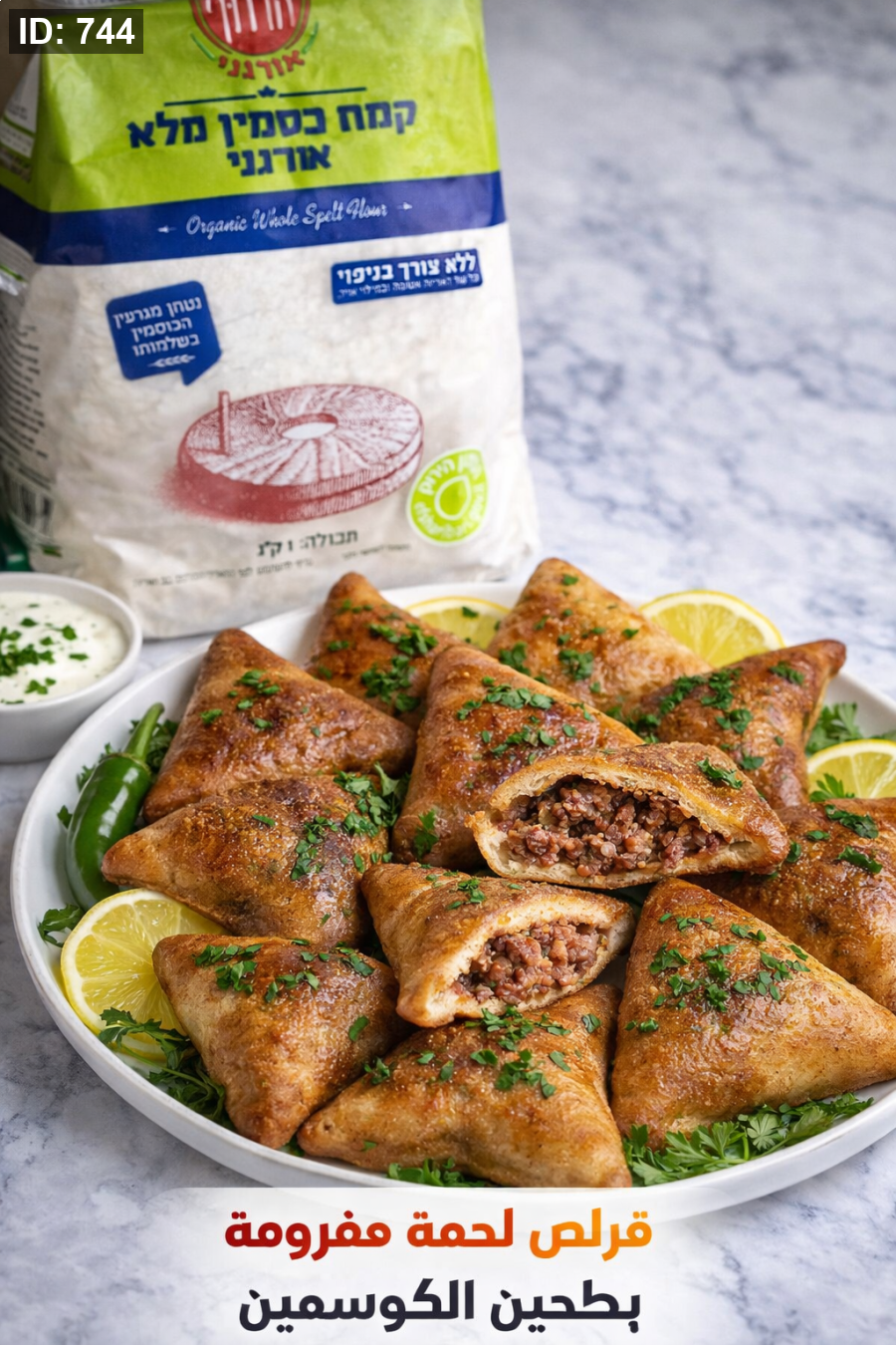 قراص مخبوزه بحشوة لحمه مفرومه من طحين الكوسمين العضوي
